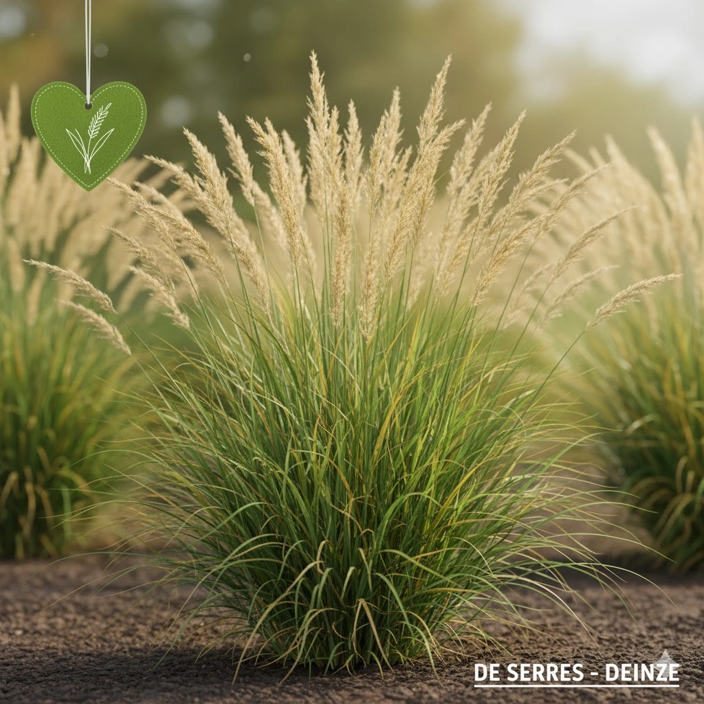 De groene bloemaren sieren dit gras vanaf de zomer. In gunstige omstandigheden bereikt dit winterharde gras een hoogte van ongeveer 1 m en wordt het tot 80 cm breed.