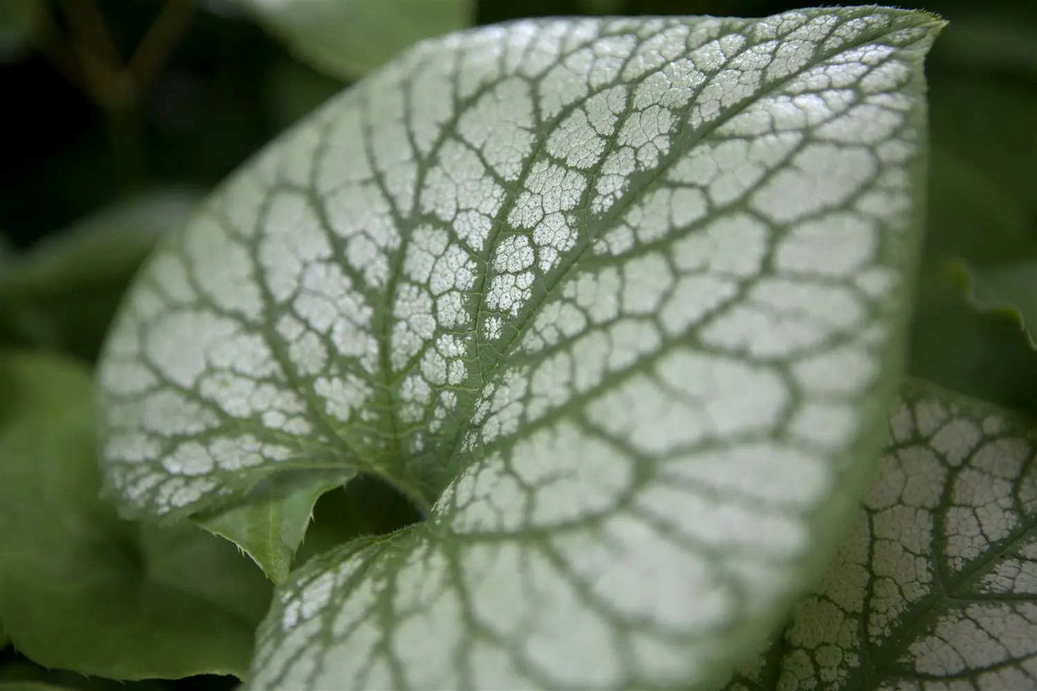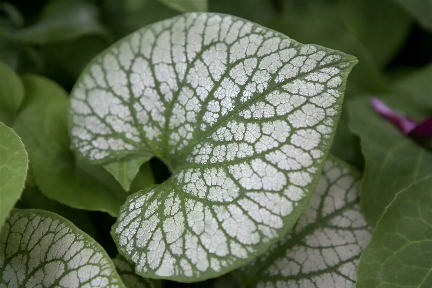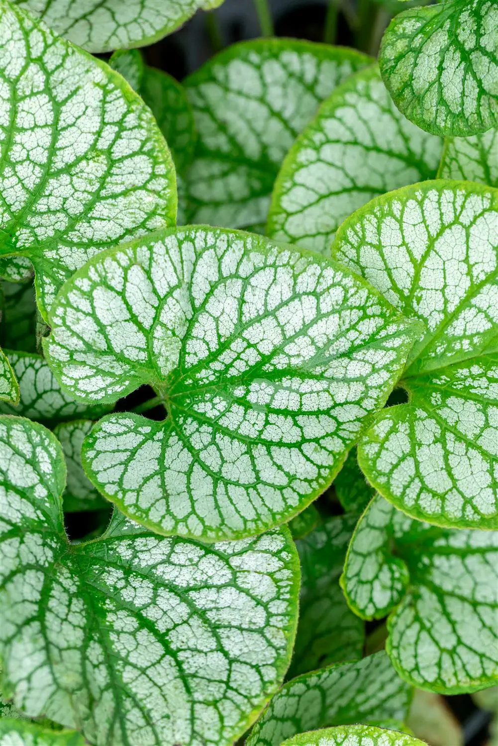 - BladerenHoge sierwaarde van het blad. De bladverliezende bladeren van de Kaukasisch vergeet-mij-nietje 'Jack Frost' zijn zilverwit, groengeaderd, hartvormig en hebben een groene rand.