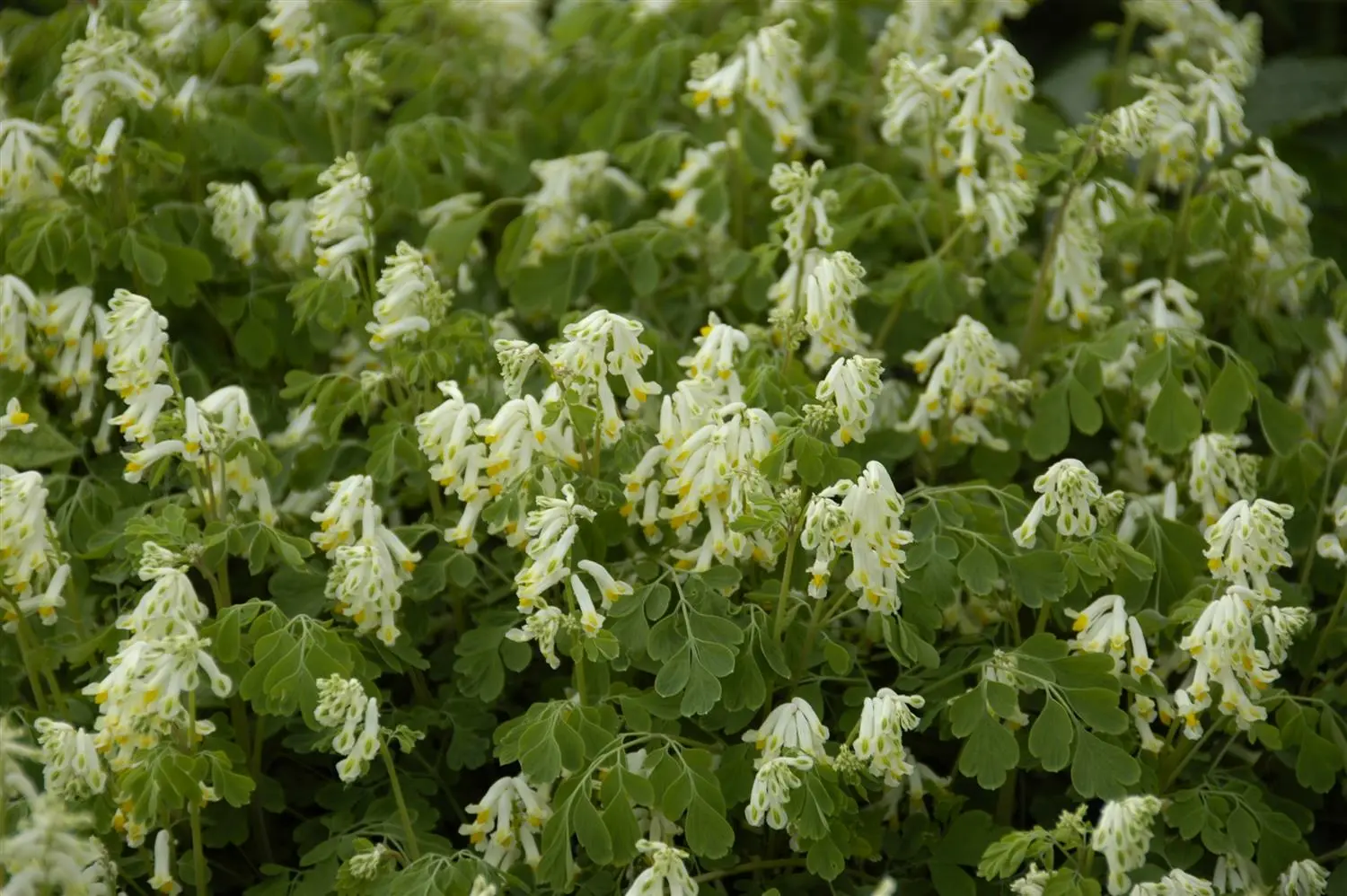De Helmbloem (Corydalis ochroleuca) is een bossige, polvormende, wintergroene vaste plant die van mei tot september witte, lipvormige bloemen bij elkaar produceert. De geveerde bladeren zijn blauwgroen van kleur. Op een schaduwrijke plek met goed doorlatende, kalkrijke grond wordt hij meestal ongeveer 30 cm hoog en ongeveer 35 cm breed. De Helmbloem verdraagt vorst goed.