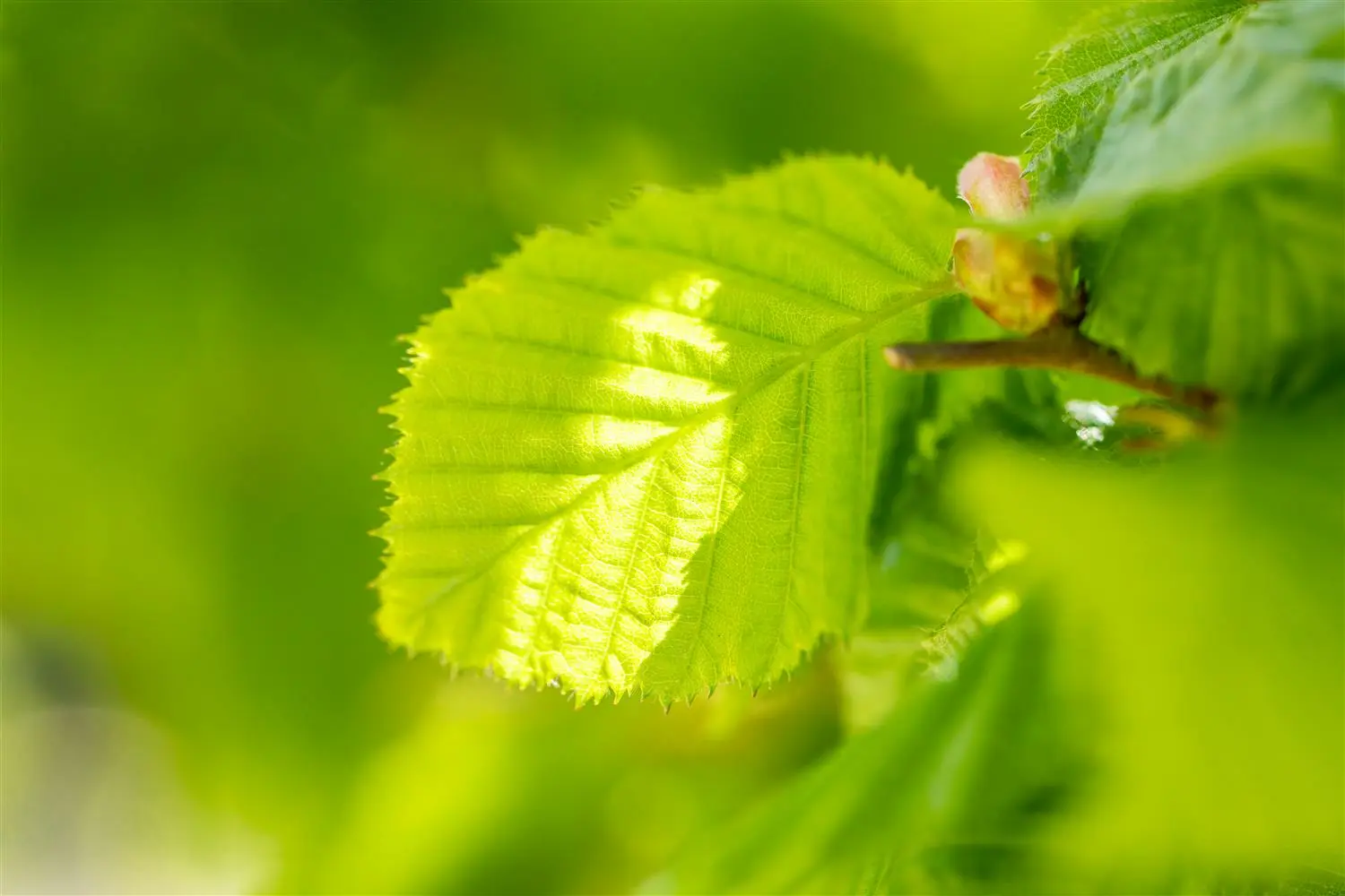 - BladerenDe bladverliezende bladeren van de Hazelnoot zijn middengroen, rond, afwisselend, gekarteld. Ze zijn ongeveer 6 - 10 cm groot. Hazelnoot is helder oranjegeel in de herfst.