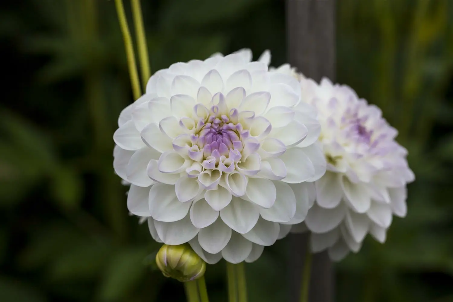 De Dahlia 'Eveline' (Dahlia) produceert aantrekkelijke, wit-roze gekleurde bloemen van juli tot oktober. Hij geeft de voorkeur aan humusrijke, zanderige grond op een zonnige, beschutte plek. De bossige plant bereikt meestal een hoogte van 0,3 - 1,5 m en wordt tot 1 m breed.