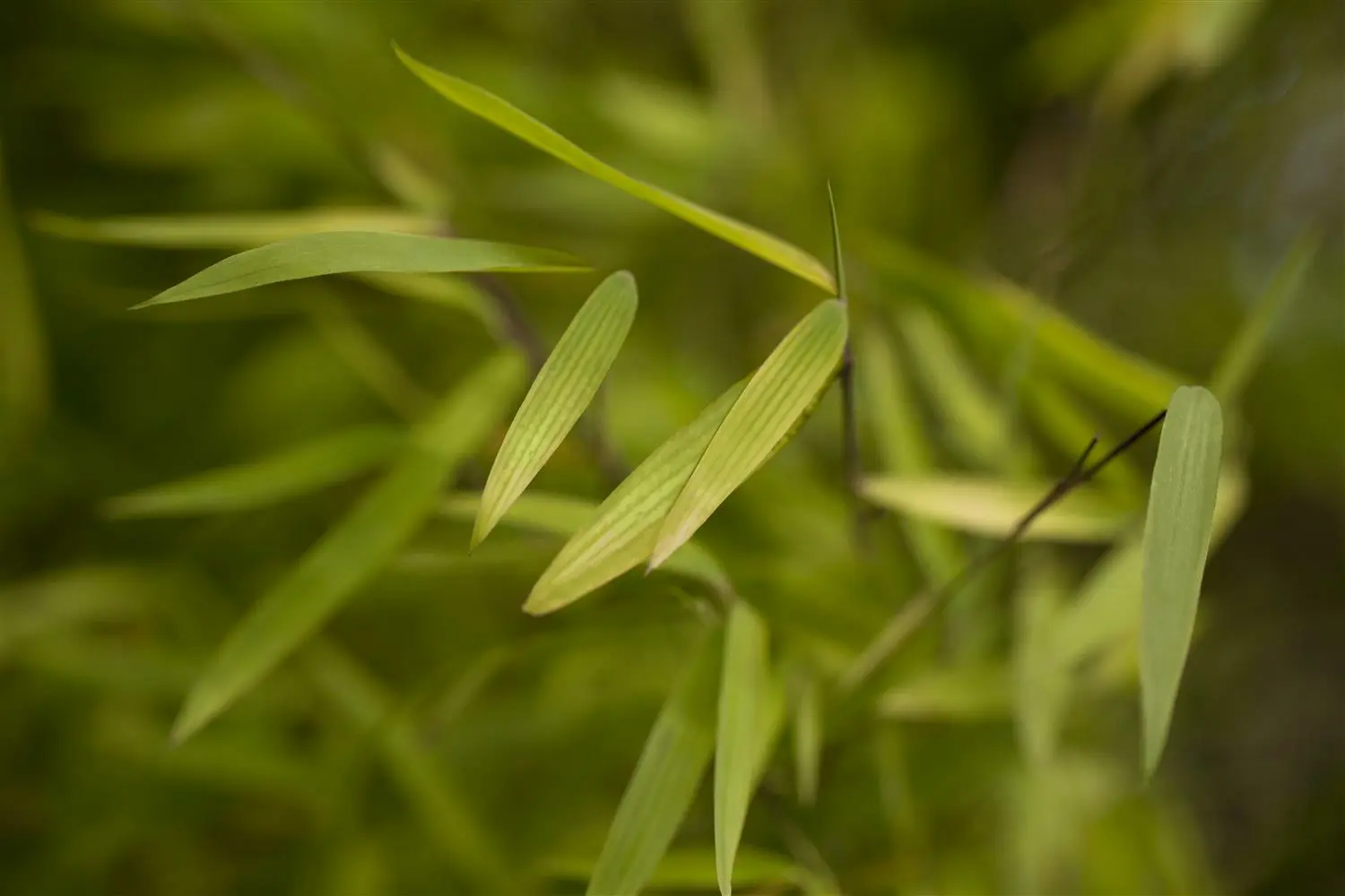 - BladerenDe wintergroene bladeren van Sierbamboe 'Jiuzhaigou 1' zijn middengroen, langwerpig.