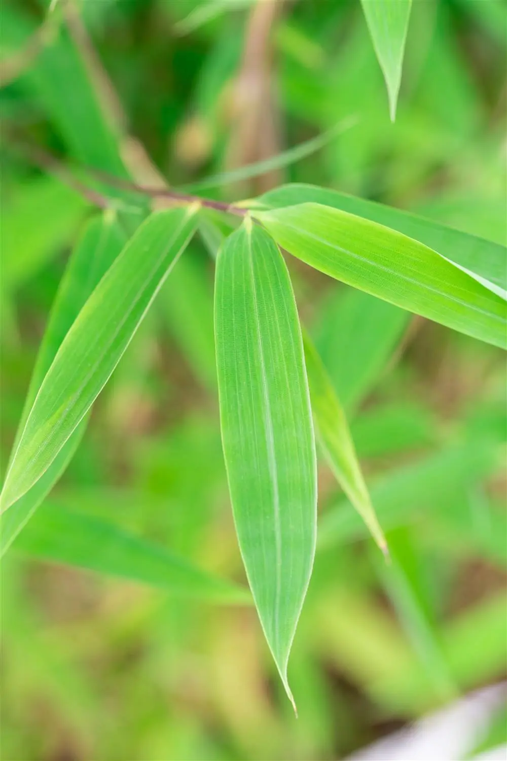 - BladerenDe altijd groene bladeren van de Bamboe 'Winter Joy's zijn lichtgroen, langwerpig.