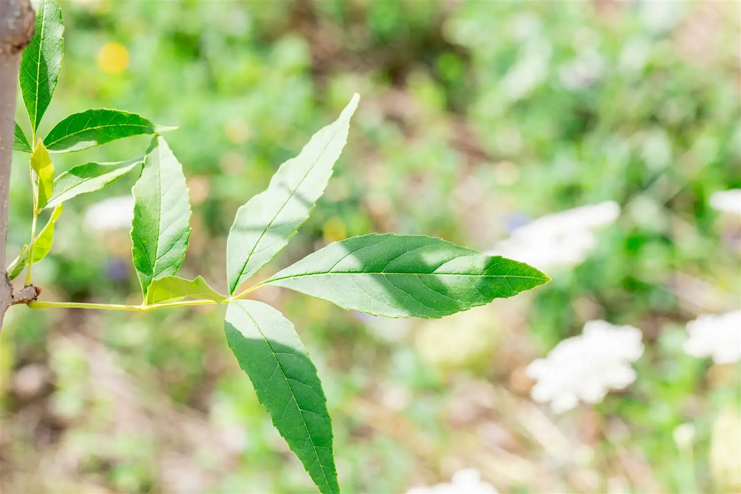 - BladerenDe bladverliezende bladeren van Rode Es 'Summit' zijn middengroen, geveerd, mat, tegenoverstaand, met gladde randen. Ze zijn ongeveer 20 - 30 cm hoog. In de herfst kleurt Rode Es 'Summit' helder goudgeel.
