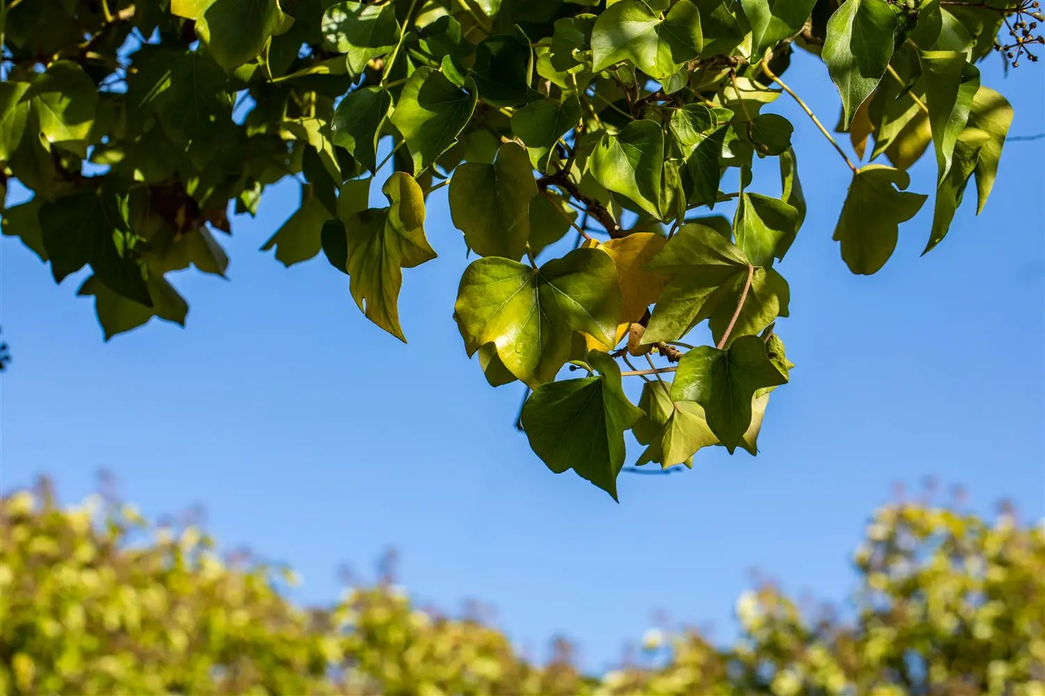 - BladerenDe altijd groene bladeren van de Klimop 'Arborescens' zijn donkergroen, hartvormig en glanzend. Ze zijn ongeveer 5 - 12 cm groot.