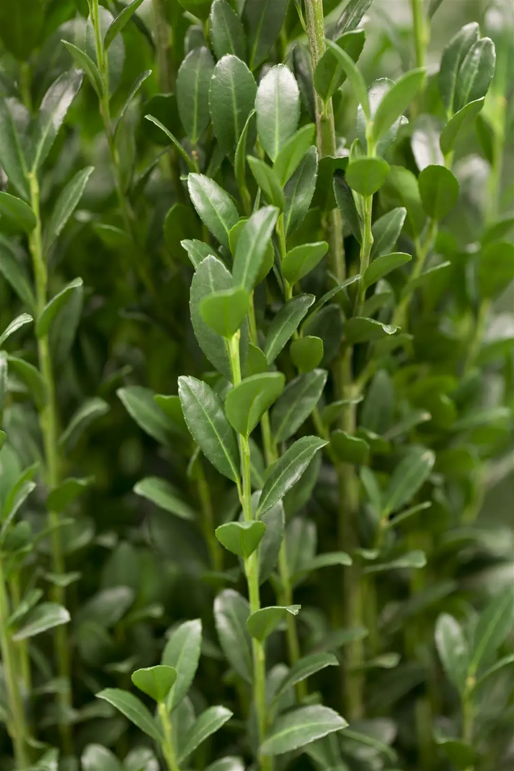 - BladerenDe wintergroene bladeren van de Japanse hulst 'Fastigiata' zijn middengroen, rond, afwisselend. Ze zijn ongeveer 2 - 3 cm groot.