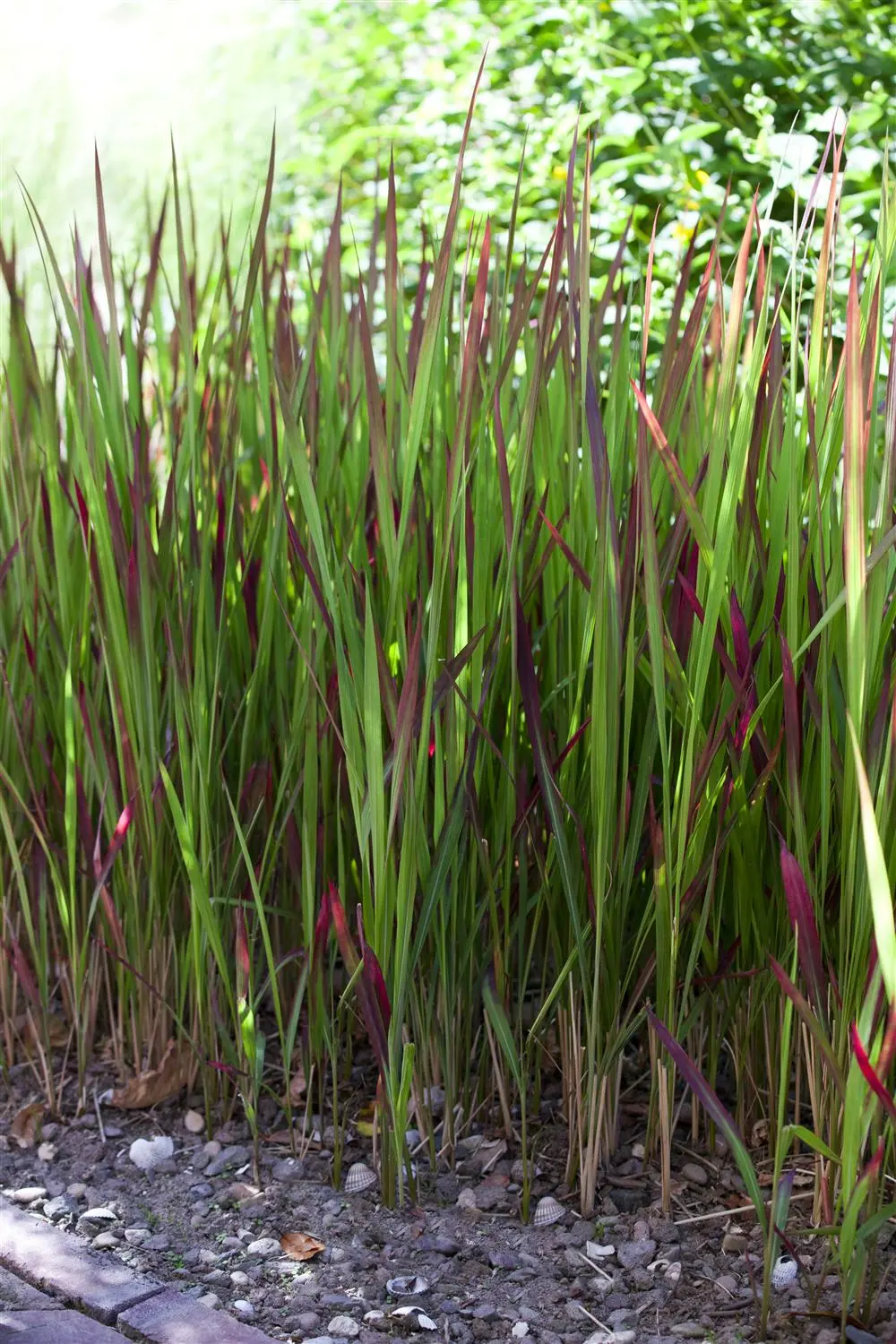 Met zijn groenrode bladkleur is de Japans bloedgras 'Red Baron' (Imperata cylindrica) een decoratieve eyecatcher in de tuin, die ook opvalt door zijn rechtopstaande, polvormende en natuurlijk groeiwijze. Hij voelt zich het beste thuis op een zonnige plek met een goed gedraineerde, humusrijke, voedingsrijke grond. Onder gunstige omstandigheden bereikt dit winterharde gras een hoogte van ongeveer 40 cm en wordt tot 40 cm breed.