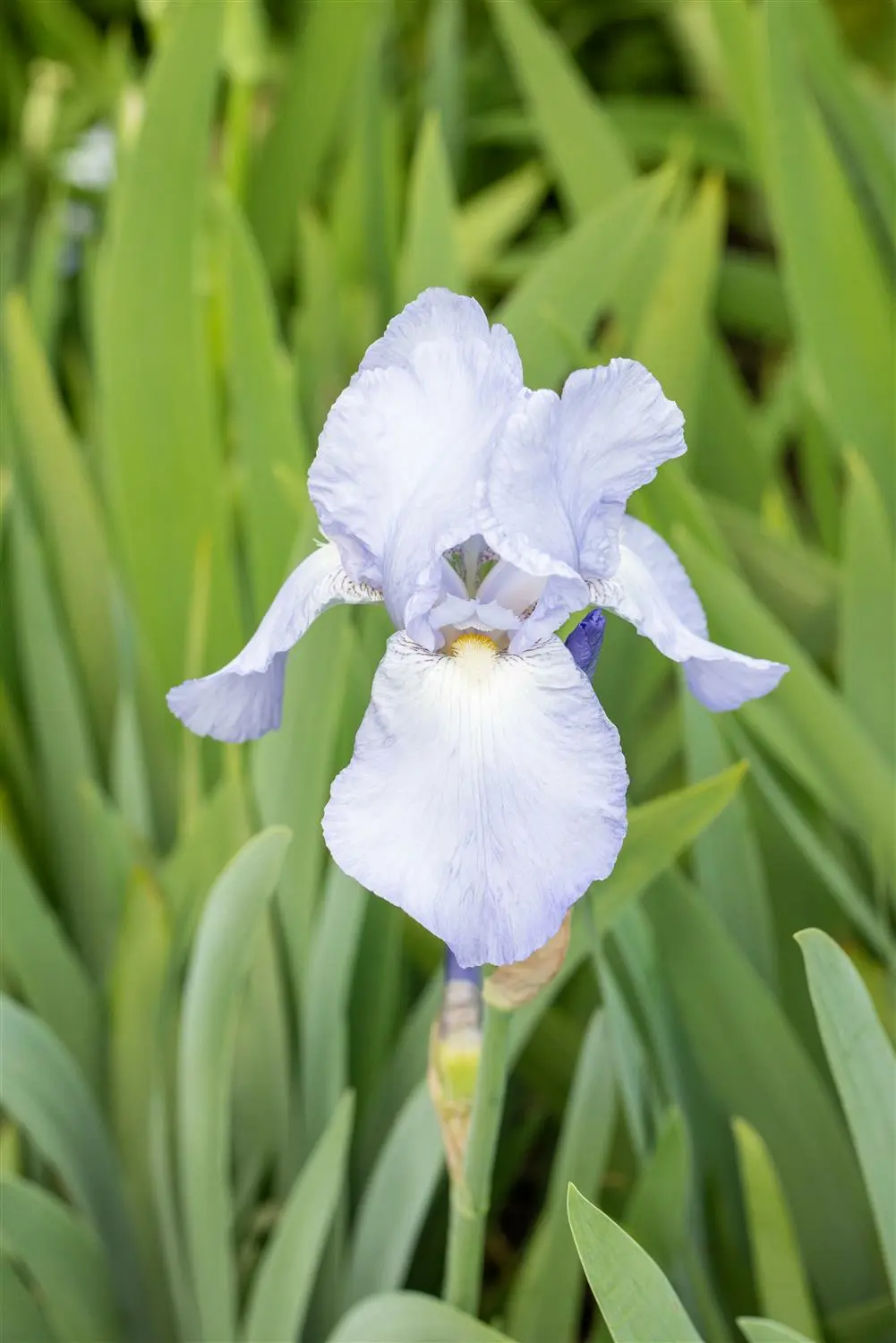De Iris 'Bedtime Story' (Iris barbata-media) is een rechtopstaande, compacte, wortelstokvormende vaste plant die van mei tot juni lichtblauwe bloemen produceert. De langwerpige, smalle bladeren zijn donkergroen. Op een zonnige plek met goed doorlatende, natuurlijke grond wordt hij meestal ongeveer 40 cm hoog en ongeveer 30 cm breed. De Iris 'Bedtime Story' verdraagt vorst goed.