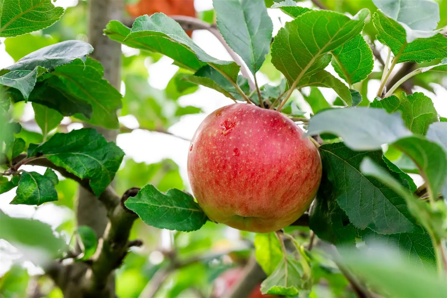 De Sterappel 'Santana' (Malus domestica) produceert rode, grote, sappige en fijne vruchten. Ze hebben een zoete smaak. Goed gedraineerde, voedingsrijke grond en een zonnige tot halfschaduwrijke standplaats creëren de ideale omstandigheden voor een hoogproductieve oogst vanaf september. De lichtroze bloei is een prachtig gezicht. Met zijn rechtopstaande en brede groei wordt de Sterappel 'Santana' ongeveer 4,5 m hoog en 3,5 m breed.
