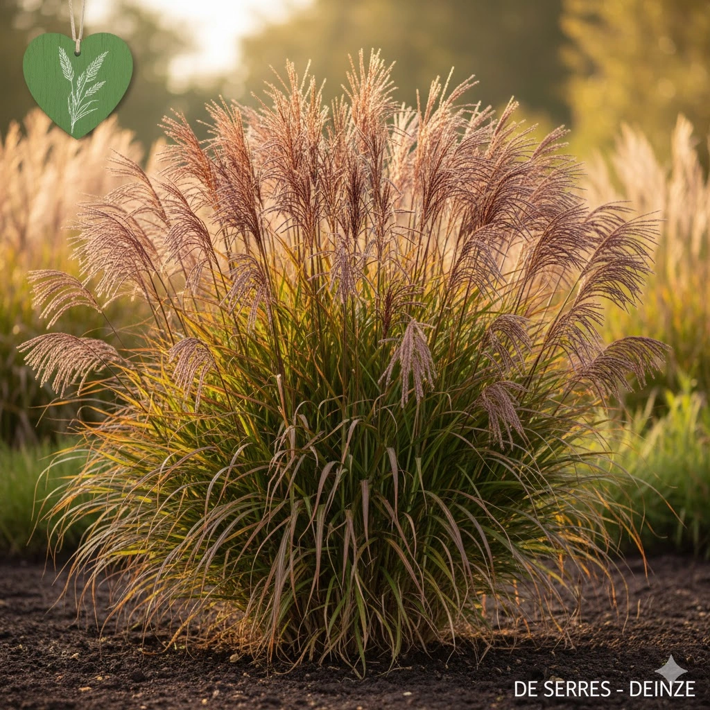 De roodbruine bloempluimen sieren dit gras vanaf de zomer. In gunstige omstandigheden bereikt dit winterharde gras een hoogte van ongeveer 1,6 m en wordt het tot 80 cm breed.