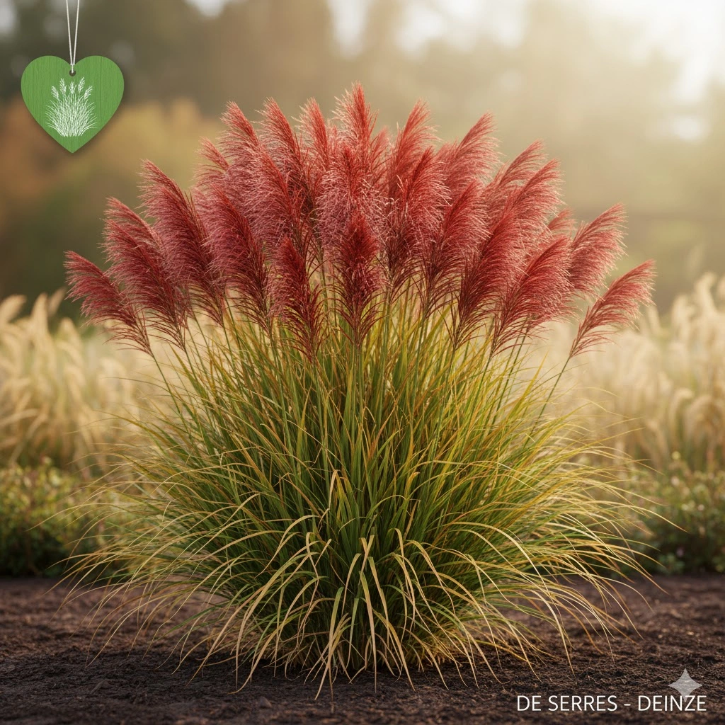 De rode bloempluimen sieren dit gras vanaf de herfst. In gunstige omstandigheden bereikt dit winterharde gras een hoogte van ongeveer 1 m en wordt het tot 60 cm breed.