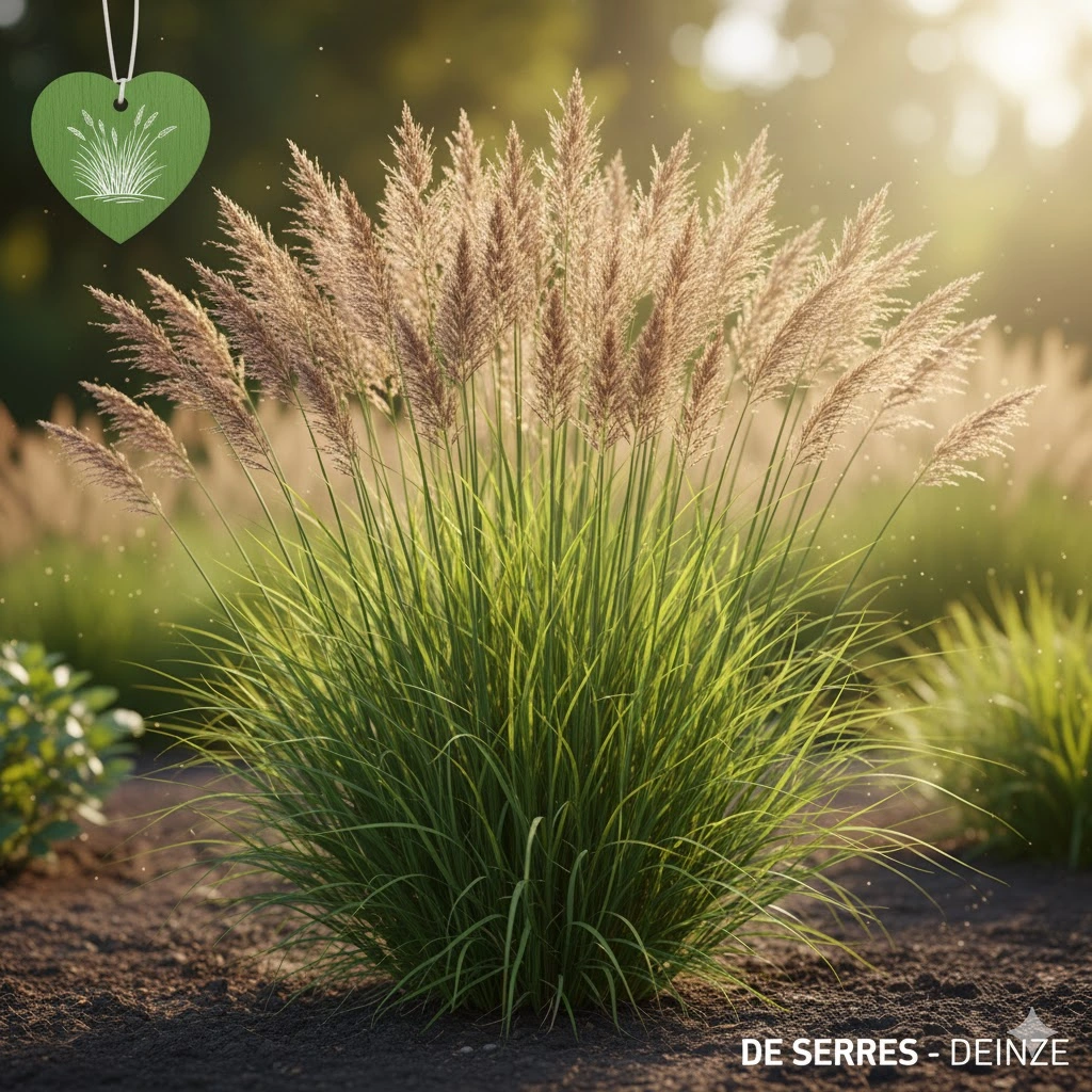 De geelgroene bloempluimen sieren dit gras vanaf de zomer. In gunstige omstandigheden bereikt dit winterharde gras een hoogte van ongeveer 2,5 m en wordt het tot 1,5 m breed.