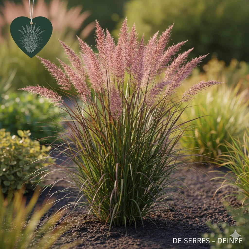 De groenbruine bloempluimen sieren dit gras vanaf de zomer. In gunstige omstandigheden bereikt dit winterharde gras een hoogte van ongeveer 75 cm en wordt het tot 50 cm breed.