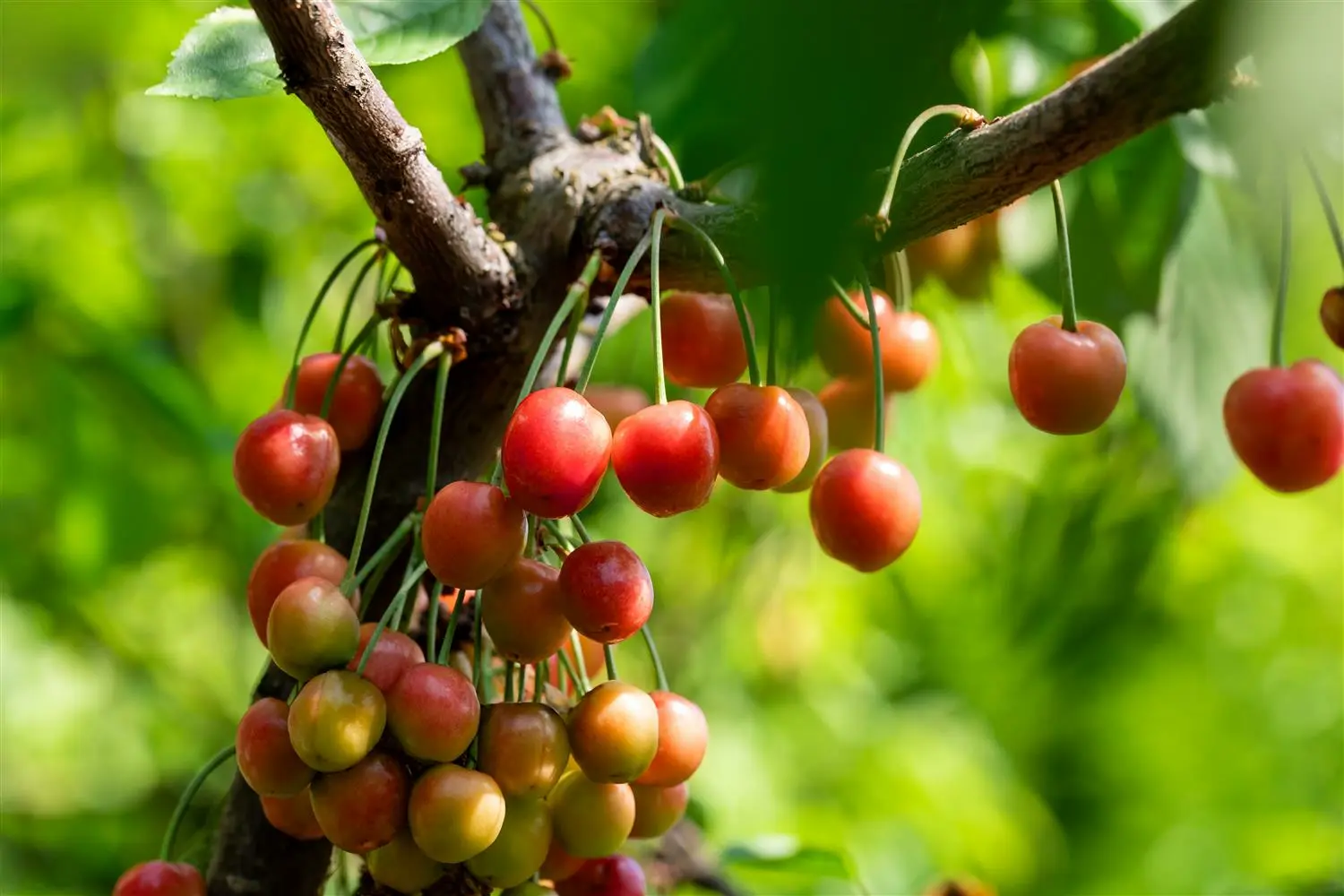 - VruchtPrunus avium 'Lapins' vormt roodbruine vruchten.