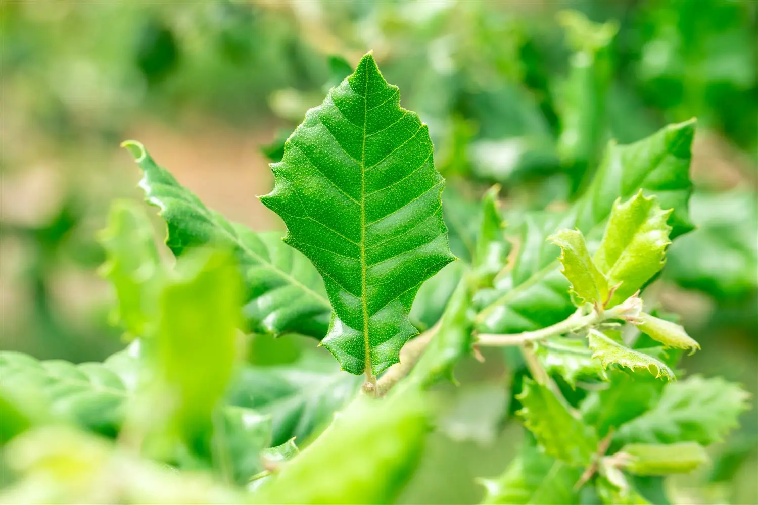 - BladerenDe altijdgroene bladeren van Steeneik zijn donkergroen, ovaal, leerachtig, afwisselend, getand. Ze zijn ongeveer 3 - 7 cm groot.