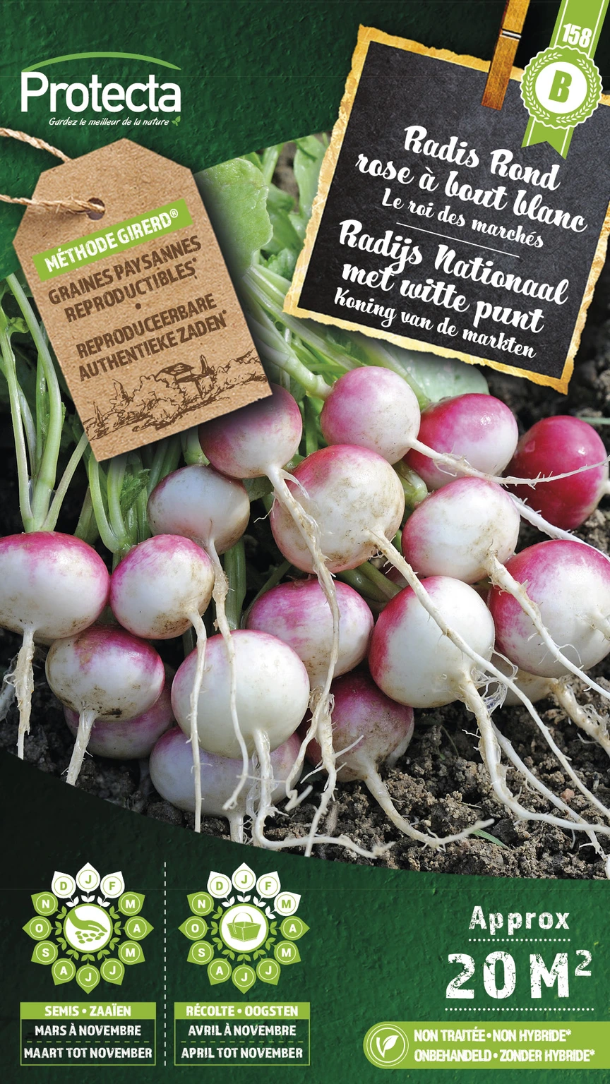 - Extra aanduidingDe radijs groeit snel en kan worden gezaaid met groenten die langer groeien, zoals wortelen.