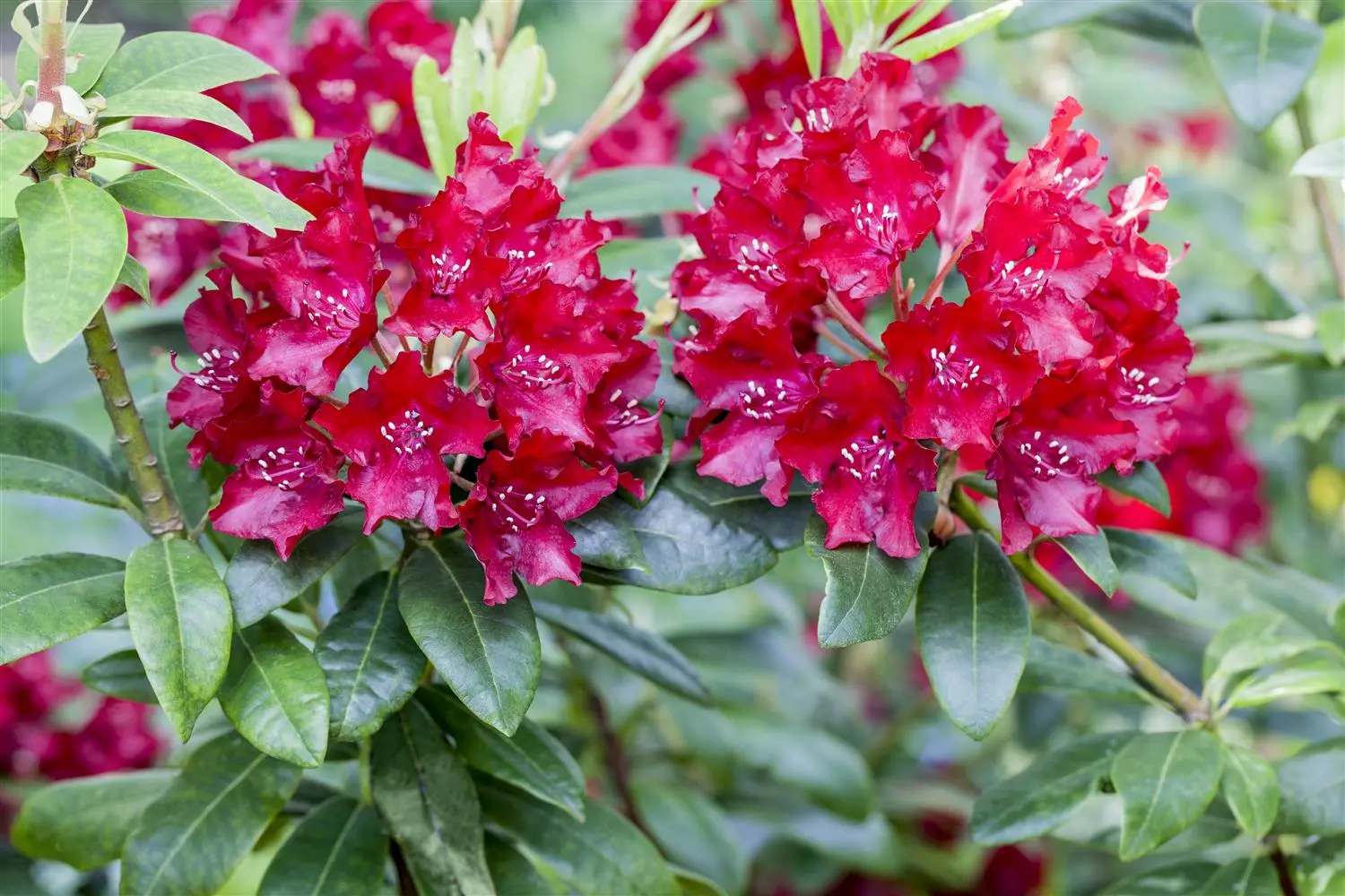 De Rododendron 'Sammetglut' (Rhododendron) produceert van half mei tot begin juni een ware zee van donkerrode bloemen. Deze rechtopstaande, natuurlijk groeiende struik bereikt meestal een hoogte van 1,2 - 1,4 meter en een breedte van 1,2 tot 1,4 meter. Een halfschaduwrijke (tot schaduwrijke) standplaats en humusrijke, kalkvrije grond creëren ideale omstandigheden voor een gezonde groei. De Rododendron 'Sammetglut' verdraagt vorst goed.