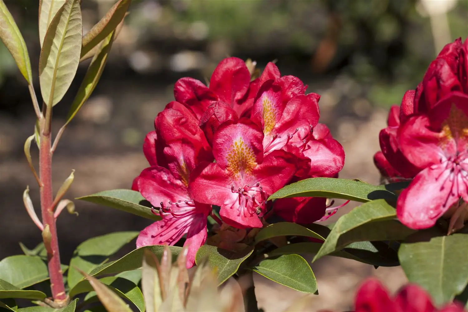 - GroeiRododendron 'Junifeuer' is rechtopstaand en breed van structuur.