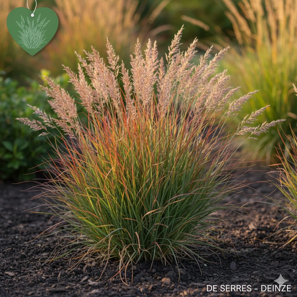 De zilverkleurige bloemaren sieren dit gras vanaf de zomer. In gunstige omstandigheden bereikt dit winterharde gras een hoogte van ongeveer 1 m en wordt het tot 80 cm breed.