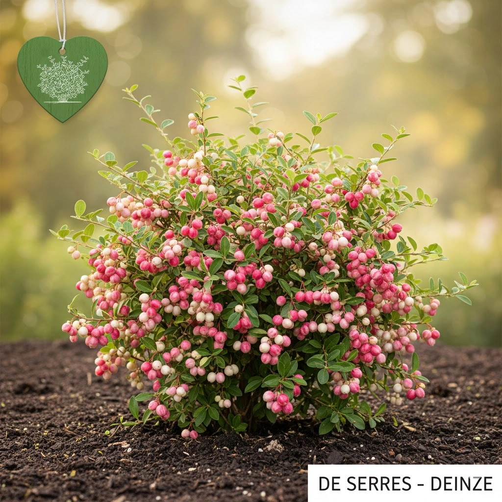 - VruchtDe roze, ronde bessen van Symphoricarpos chenaultii zijn bijzonder decoratief. Deze verschijnen vanaf september. Zeer lang houdbaar.