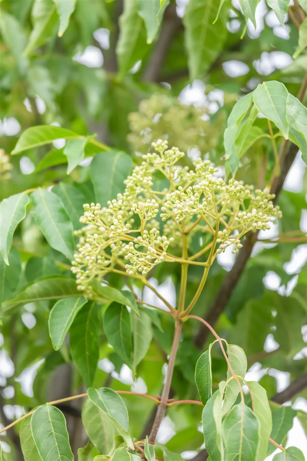 - BladerenDe bladverliezende bladeren van de Bijenboom zijn middengroen, geveerd, glanzend, leerachtig en tegenoverstaand. Ze zijn ongeveer 20 - 30 cm hoog. Bijenboom kleurt heldergeel in de herfst.