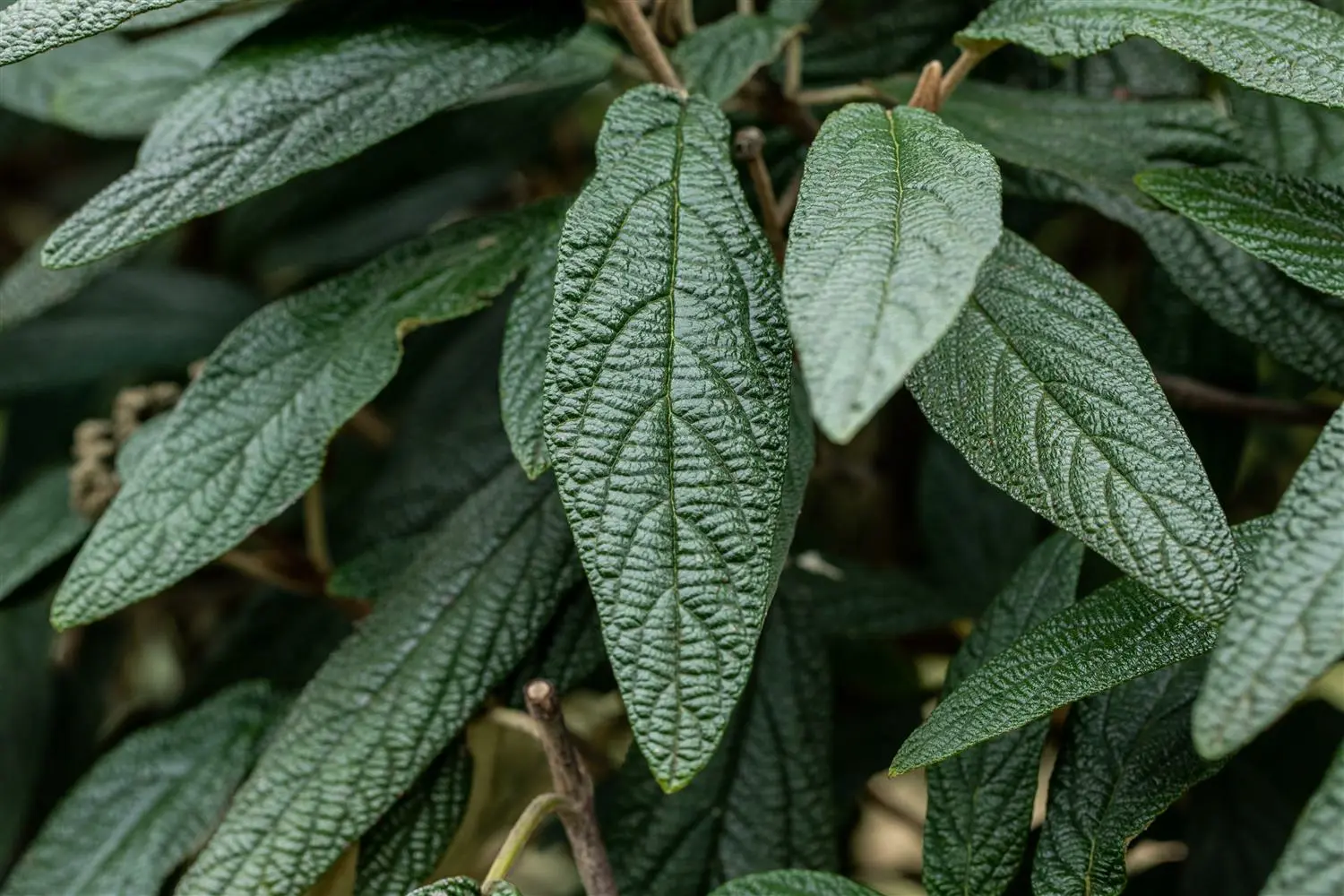 - BladerenDe wintergroene bladeren van de Sneeuwbal 'Pragense's zijn donkergroen, langwerpig, glanzend en tegenoverstaand. Ze zijn ongeveer 7 - 12 cm groot.