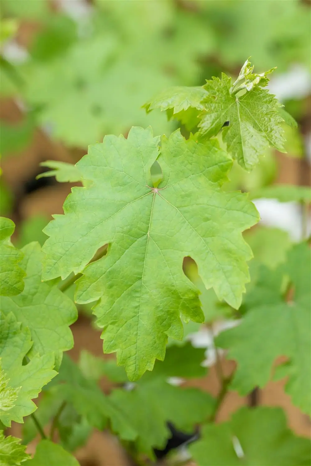 - BladerenDe bladverliezende bladeren van Druif 'Talizman'(s) zijn donkergroen, hartvormig, getand.