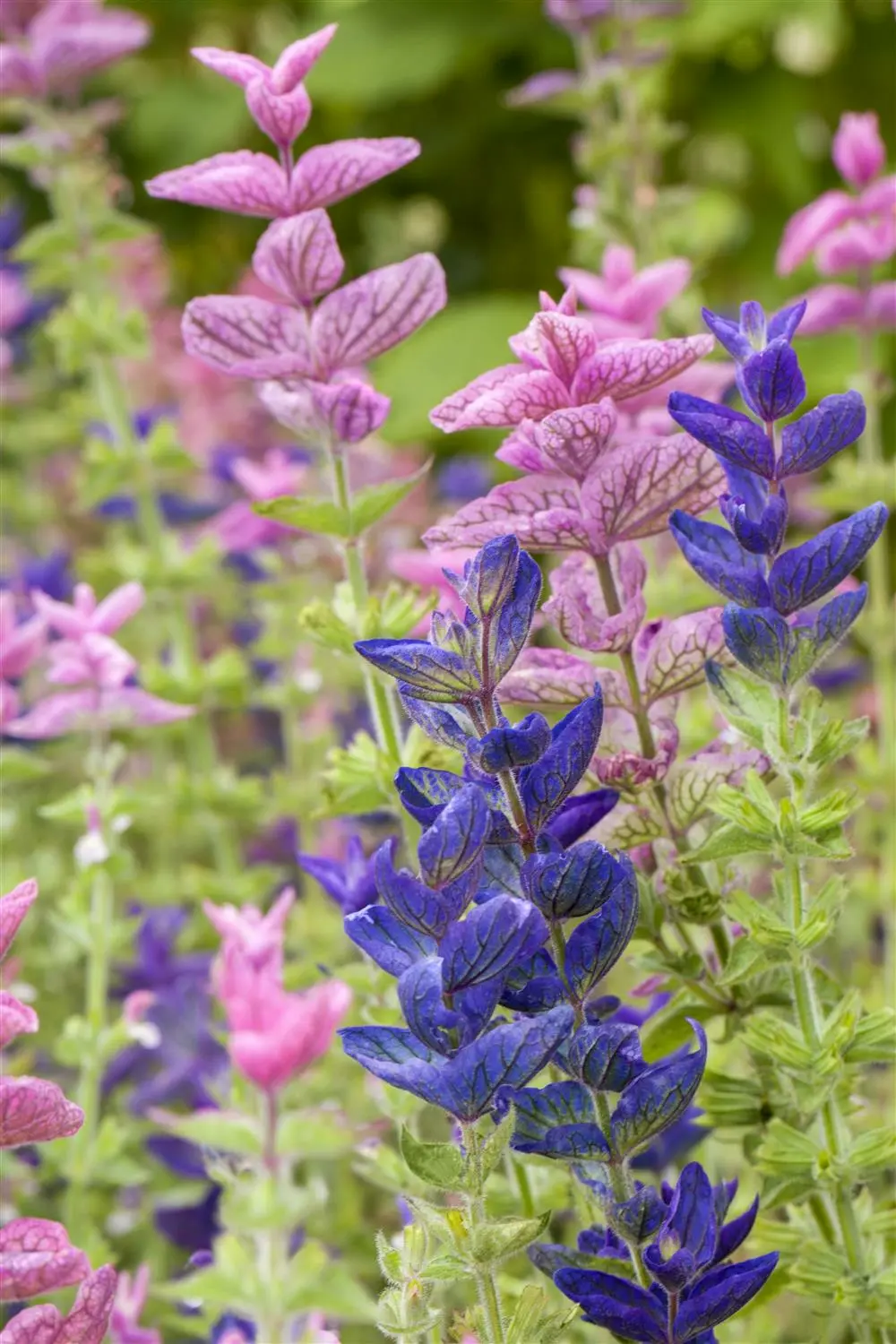 De Salie (Salvia viridis) is een populaire plant voor op het balkon. Hij geeft de voorkeur aan een zonnige standplaats en een goed gedraineerd substraat.