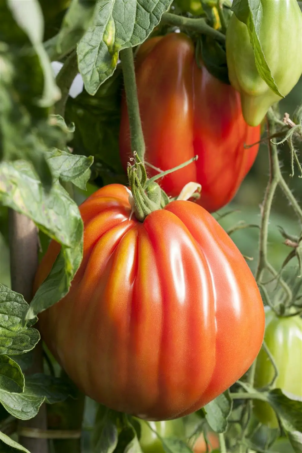 De Tomaat 'Ochsenherz' (Solanum lycopersicum) produceert zeer grote, smakelijke vruchten die al in juli geoogst kunnen worden. Voor optimale groei heeft Tomaat 'Ochsenherz' een zonnige locatie en goed gedraineerde, voedselrijke grond nodig.