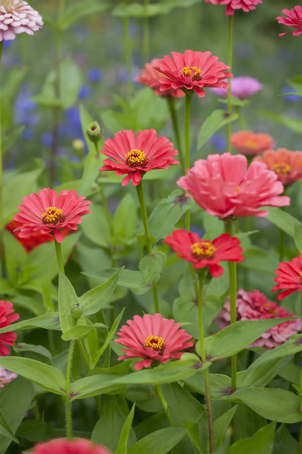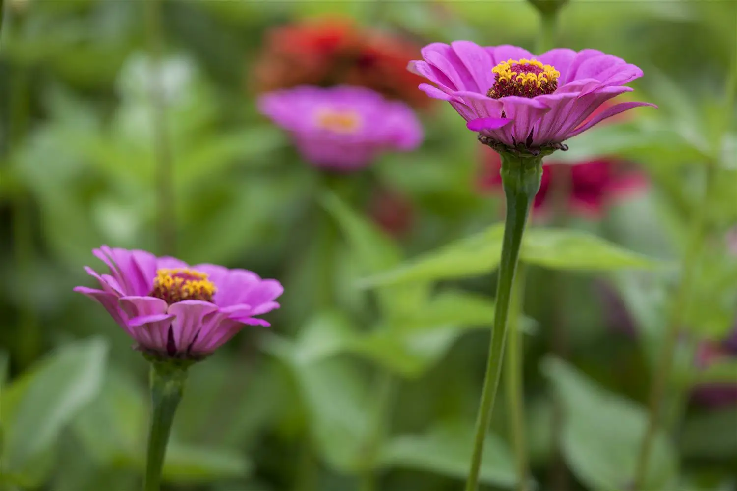 De Zinnia (Zinnia elegans) is een populaire plant voor op het balkon die het hele seizoen door ontelbare kleurrijke bloeiwijzen produceert. Hij geeft de voorkeur aan een zonnige standplaats en een goed gedraineerd substraat.