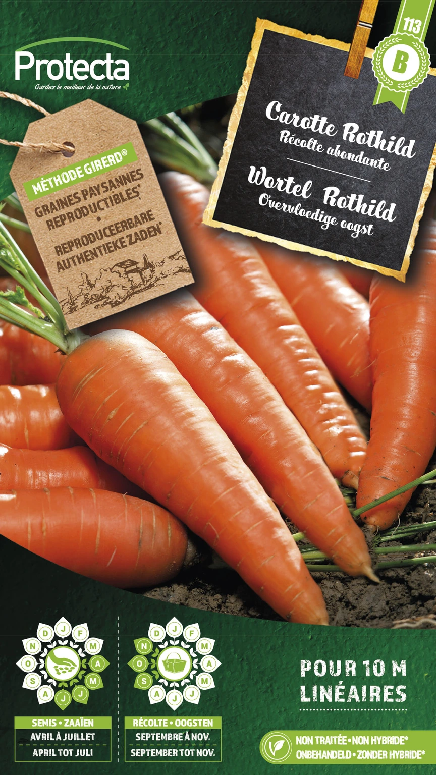 - Extra aanduidingWortelen doen het goed in de buurt van uien, sjalotten of prei die ze tegen schadelijke insecten beschermen.