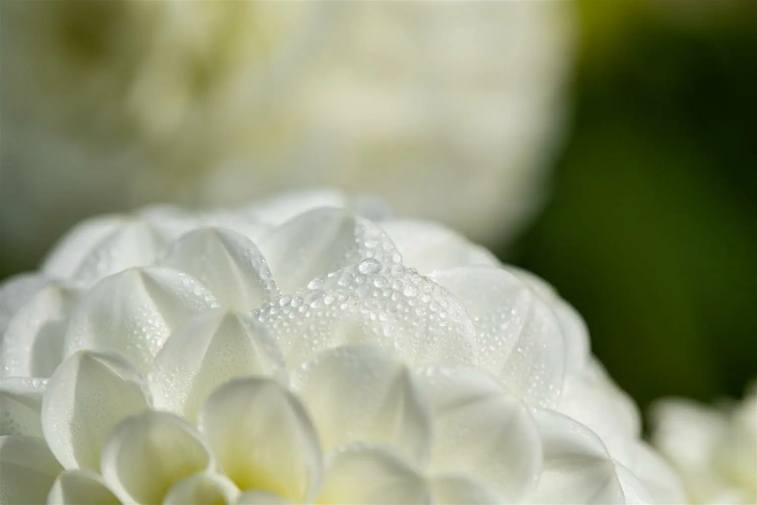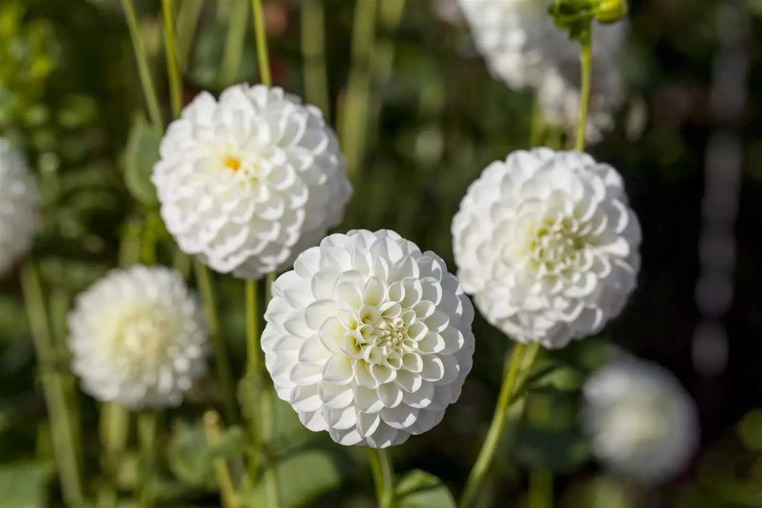 De Dahlia 'White Aster' (Dahlia) produceert aantrekkelijke, witte, volle bloemen van juli tot oktober. Hij geeft de voorkeur aan humusrijke, zanderige grond op een zonnige, beschutte plaats. De bossige, rechtopstaande plant bereikt meestal een hoogte van 1 - 1,2 m en wordt tot 60 cm breed.